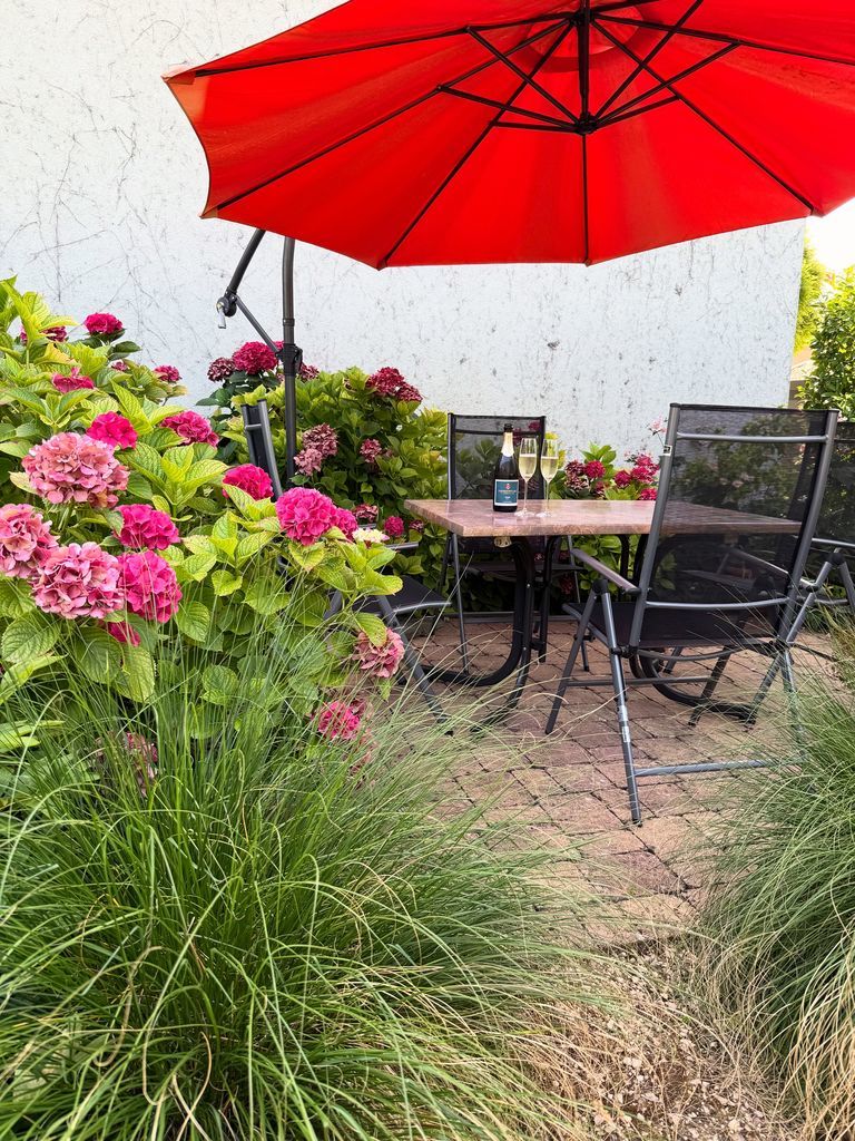 DG mit verschiedenen Sitzgelegenheiten im Garten, je nach Lust & Laune & Sonne